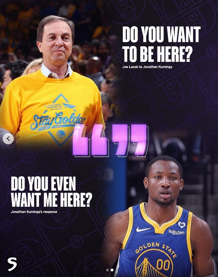 這兩句話,放在愛情影片中綽綽有余,但偏偏它們出現(xiàn)的場景是商業(yè)談判。前一句來自金州勇士老板拉科布,后一句是勇士前鋒庫明加的反問。聽起來有些莫名其妙,因?yàn)檫@不同于愛情片中男女雙方小心翼翼地試探,拉科布與庫明加在提問與反問時(shí),都知道答案。