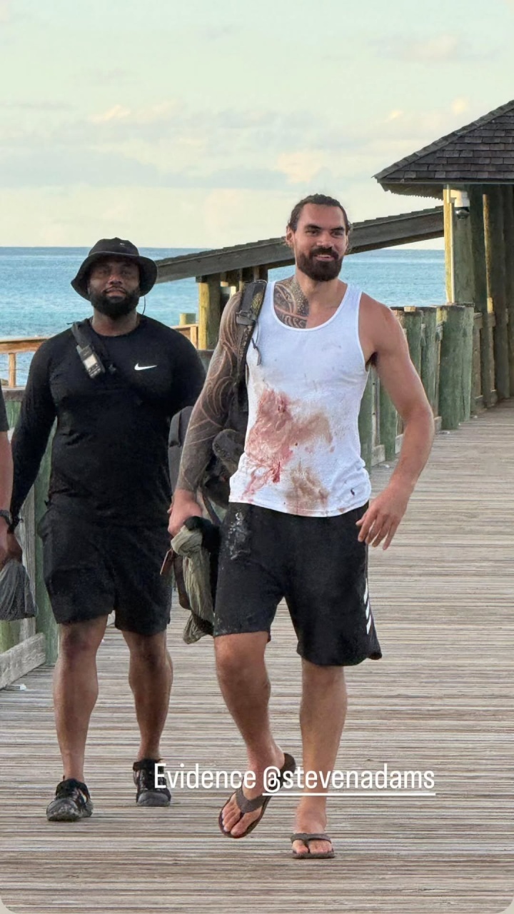 這兩條魚挺大??亞當(dāng)斯和杜蘭特相約釣魚 KD眼鏡一戴氣質(zhì)太絕了