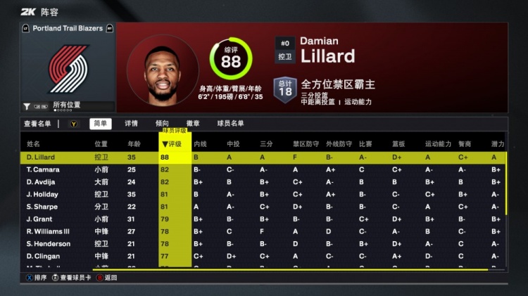 8月30日訊 今日NBA 2K26正式發(fā)布,開拓者隊球員能力值如下: