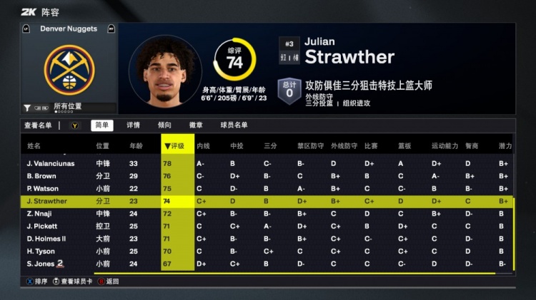 8月30日訊 今日NBA 2K26正式發(fā)布,掘金隊球員能力值如下: