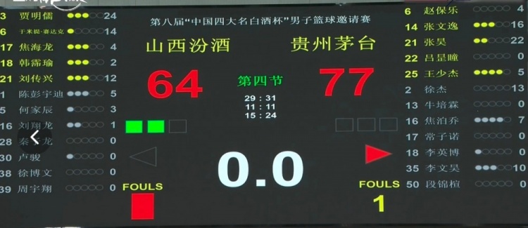 9月24日訊 中國四大名白酒杯邀請賽,貴州茅臺77-64戰(zhàn)勝山西汾酒。