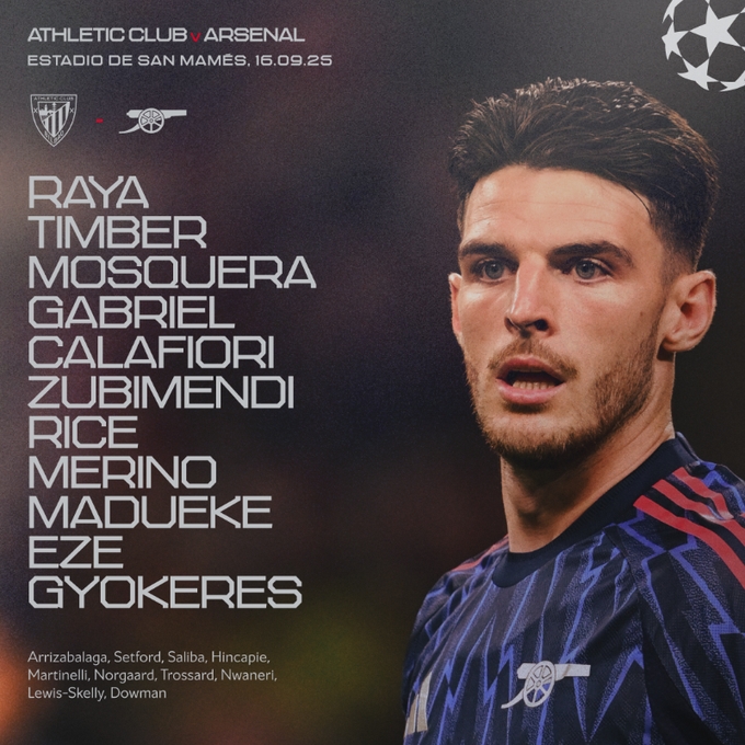 09月16日訊 歐冠聯(lián)賽階段第1輪,畢爾巴鄂競(jìng)技主場(chǎng)迎戰(zhàn)阿森納,賽前首發(fā)名單公布。本場(chǎng)比賽厄德高、薩卡、哈弗茨、本-懷特因傷缺戰(zhàn),新援約克雷斯、埃澤、馬杜埃凱出戰(zhàn),薩利巴回歸坐鎮(zhèn)替補(bǔ)。
