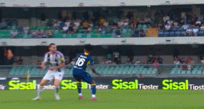 在本場(chǎng)比賽第43分鐘,尤文球員若昂-馬里奧在禁區(qū)內(nèi)手球,主裁判拉普阿諾第一時(shí)間沒有吹罰,但VAR隨即介入,主裁判拉普阿諾到場(chǎng)邊觀看視頻回放后,改判點(diǎn)球,維羅納依靠這個(gè)點(diǎn)球?qū)⒈确职馄健?/p>