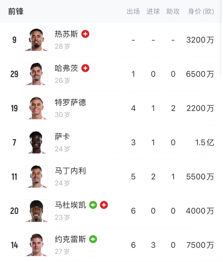 薩卡剛復出??槍手鋒線再傷一人,棍哥休2月+哈弗茨熱蘇斯還沒好