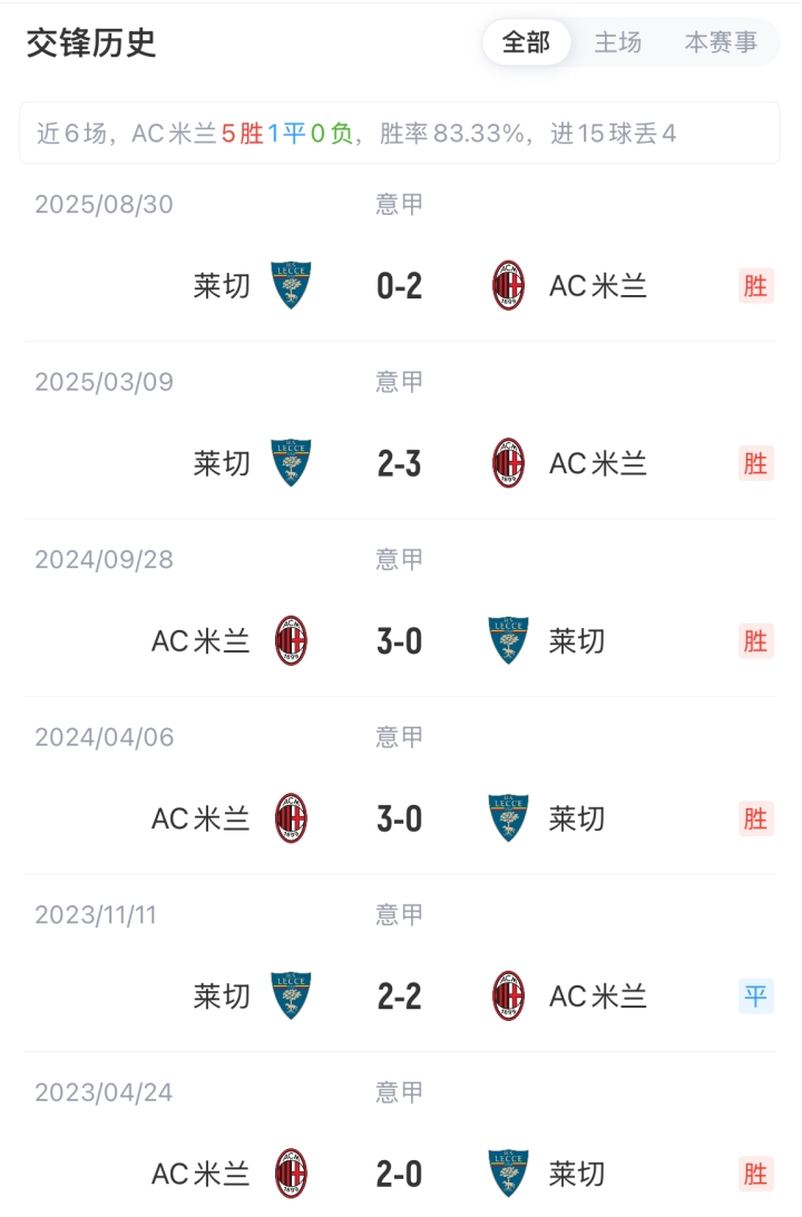 9月24日訊?意杯第二輪,米蘭主場(chǎng)迎戰(zhàn)萊切比賽即將打響。賽前首發(fā)出爐。