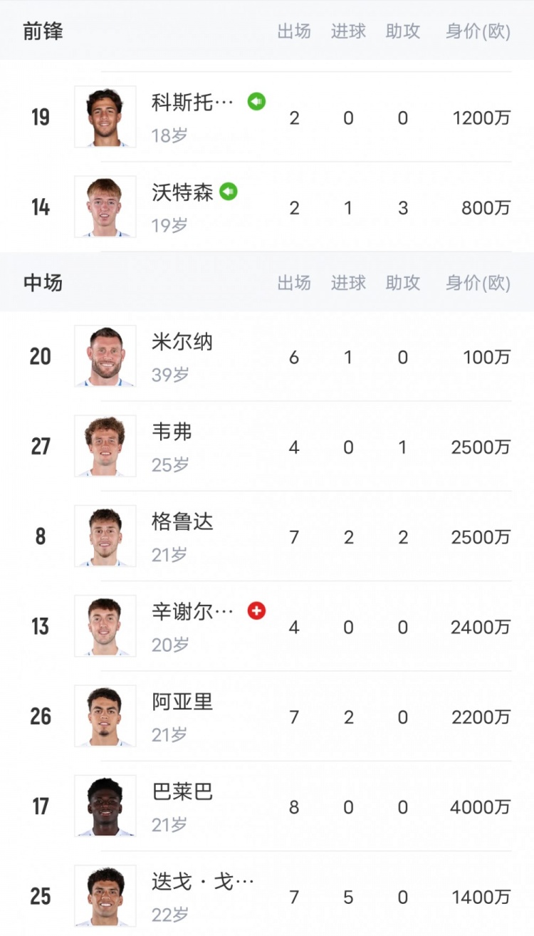 本場比賽,表現(xiàn)出色的有身價1400萬歐的迭戈-戈麥斯、3200萬歐的范赫克、1600萬歐的德屈佩...