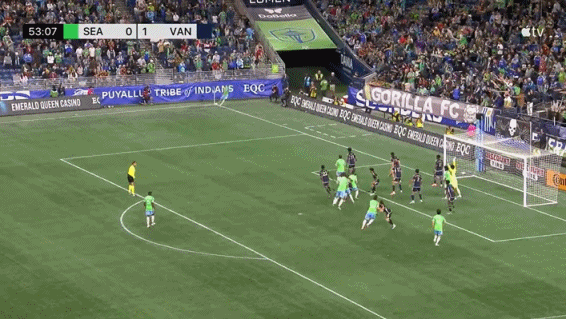 隨后西雅圖海灣人54分鐘、55分鐘破門,僅用1分30秒打進(jìn)2球,西雅圖海灣人將比分改寫為2-1溫哥華白浪。